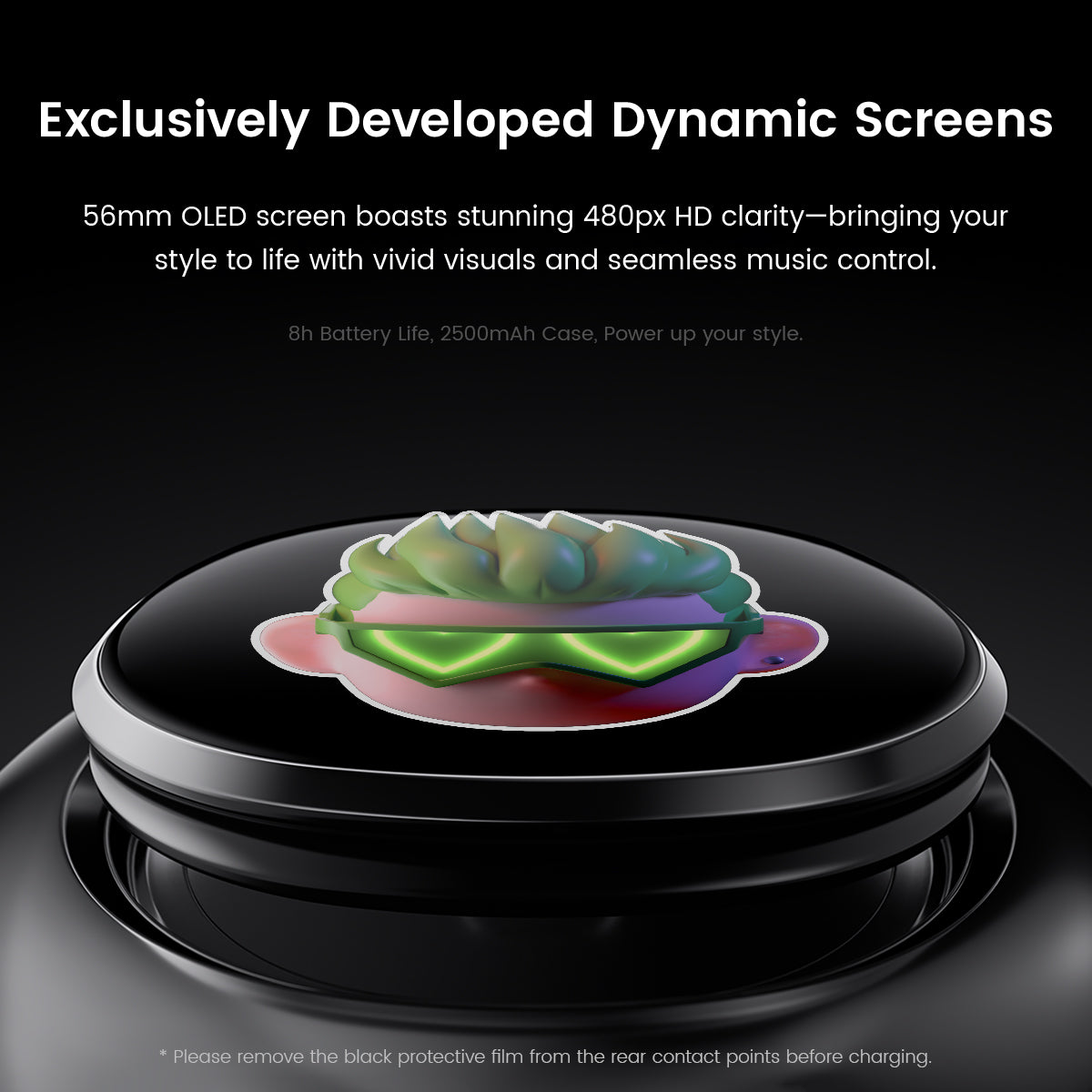 2. When the Touchscreen F1 is charging in the portable charging case, simply tap the screen to see the charging icon and current battery level displayed at the bottom.